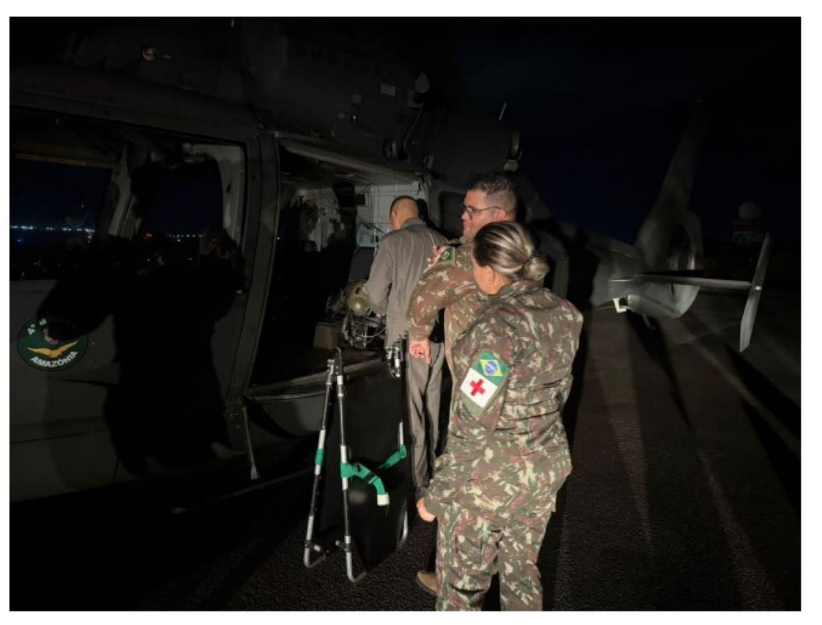 Após acionamento, o Comando Conjunto Catrimani II mobilizou o helicóptero HM-1 Pantera e uma equipe de saúde, ambos do Exército Brasileiro, para realizar o resgate.