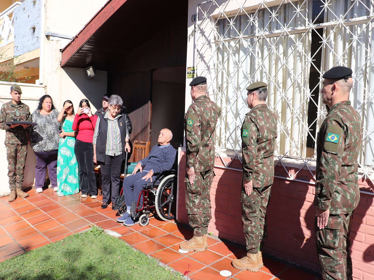 Curitiba (PR) – Ao completar 101 anos de idade, o Major Antonio Ribeiro da Silva, veterano da Força Expedicionária Brasileira (FEB), recebeu em sua casa uma homenagem do Exército Brasileiro, marcando o reconhecimento da Instituição pelos seus feitos heroicos nas Batalhas de Monte Castelo e Montese.
