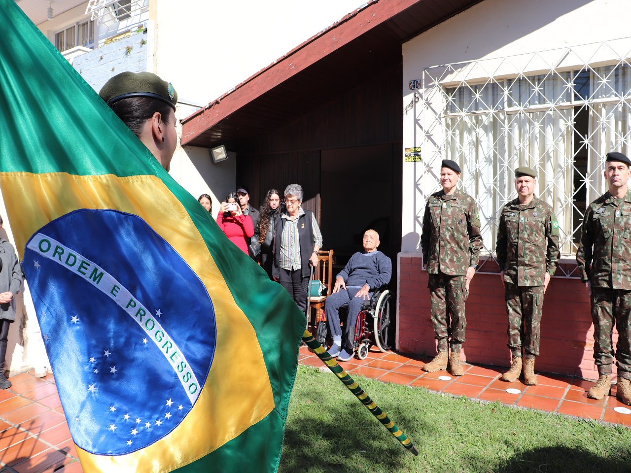 A cerimônia teve início com o toque de presença de ex-combatente, seguido pela canção do expedicionário. Na ocasião, o Senhor Antonio Ribeiro recebeu a Medalha Tributo à Força Expedicionária Brasileira. Na sequência, a Banda de Música da 5ª Divisão de Exército homenageou o pracinha com a música “Parabéns a você” que foi cantada por seu filho, Coronel Veterano João Batista Kury da Silva e familiares; bem como pelos vizinhos, amigos e demais presentes.