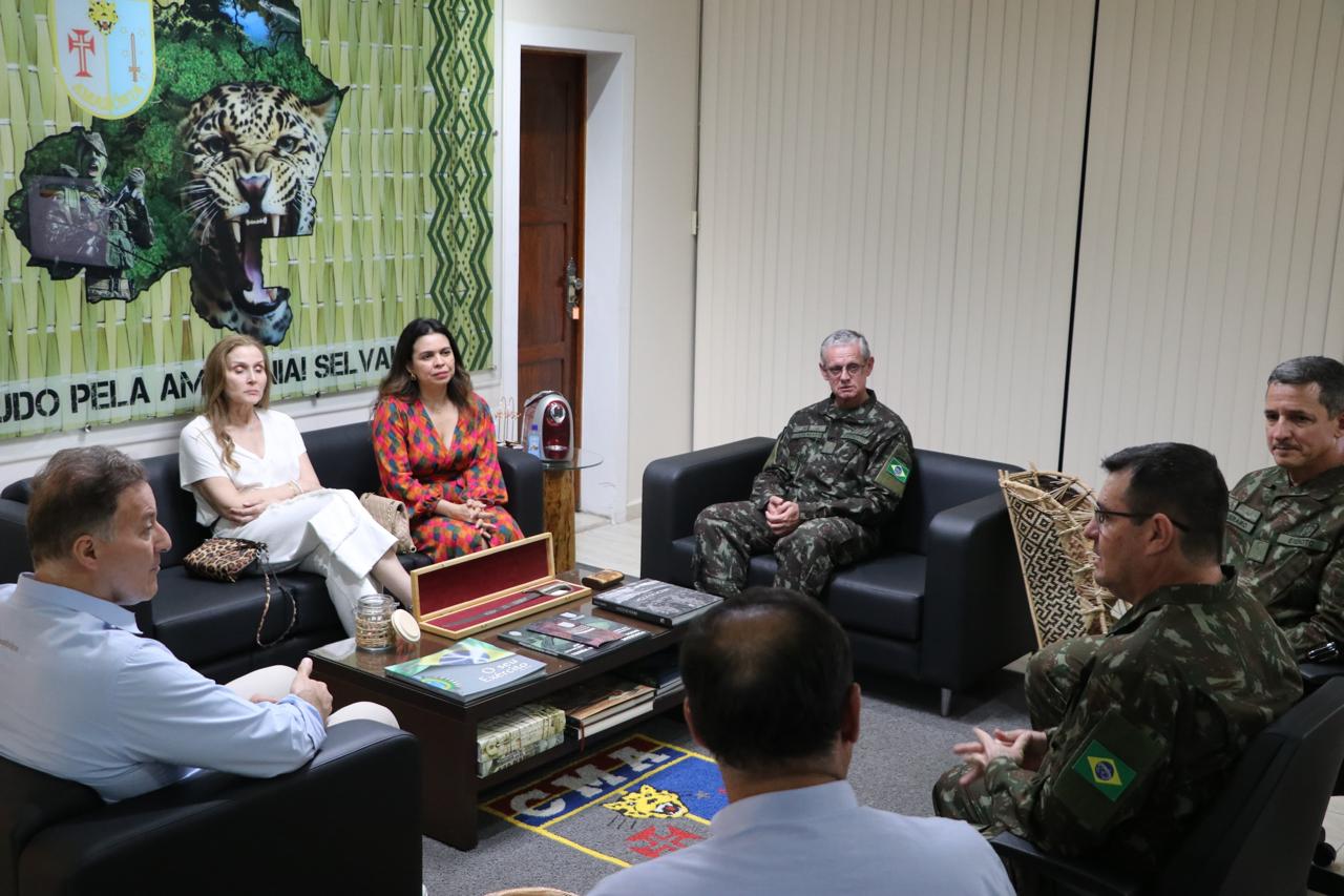 Manaus (AM) – Nos dias 8 e 9 de maio, o Comandante do Instituto Militar de Engenharia (IME), General de Divisão Juraci Ferreira Galdino, esteve na capital do Amazonas para discutir com autoridades e instituições parceiras o projeto de implantação do Instituto de Pesquisa do Exército na Amazônia (IPEAM), que tem como objetivos apoiar atividades de extensão do IME, criar um curso de pós-graduação visando à defesa, à soberania e ao desenvolvimento sustentável da Amazônia e realizar desenvolvimento científico-tecnológico nas áreas de inteligência artificial, tecnologias quânticas, biotecnologia e transição energética.