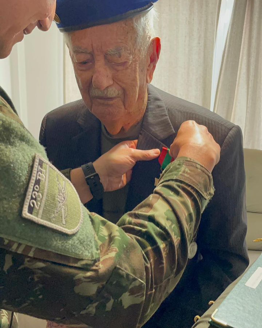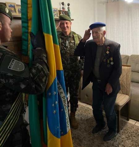 Blumenau (SC) – No dia 5 de setembro de 2024, integrantes do 23º Batalhão de Infantaria (23º BI) realizaram a entrega da Medalha Tributo à Força Expedicionária Brasileira ao senhor José Bernardino Coelho, de 103 anos de idade, eterno integrante da FEB. A atividade ocorreu na residência do homenageado, na cidade de Balneário Camboriú (SC).