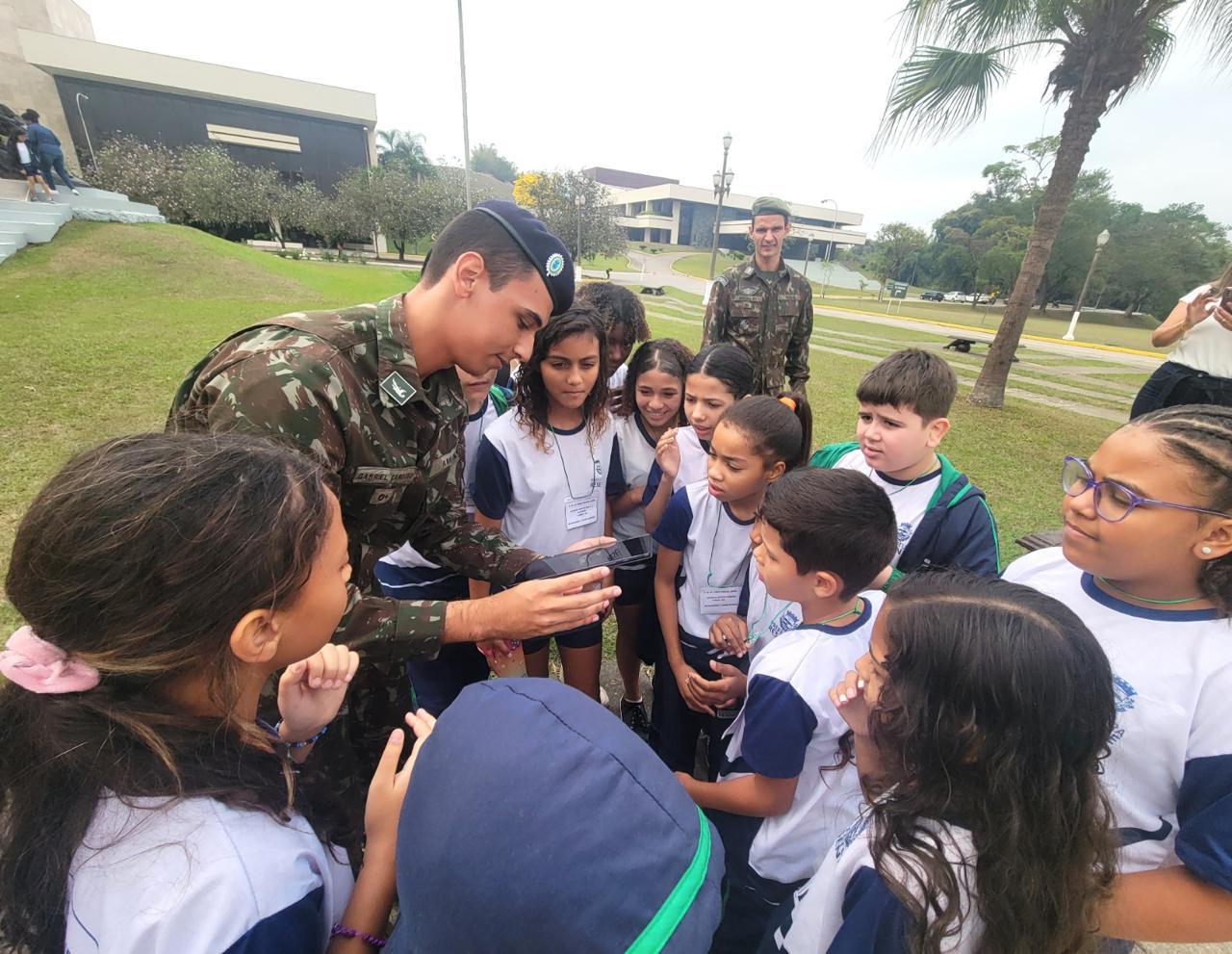 O projeto Soldado por um dia levou mais de 900 alunos e professores da rede municipal de Resende (RJ) para vivenciar parte da rotina e da formação do Cadete de Academia Militar das Agulhas Negras. Eles percorreram diversas instalações de ensino e conheceram parte do acervo histórico da Academia. Na Seção de Equitação, participaram de atividades relacionadas à equitação e hipismo, típicas da formação do cadete. Os visitantes também participaram de atividades na Seção de Educação Física, observaram alguns dos materiais militares empregados pela tropa e embarcaram em viaturas operacionais do Exército.