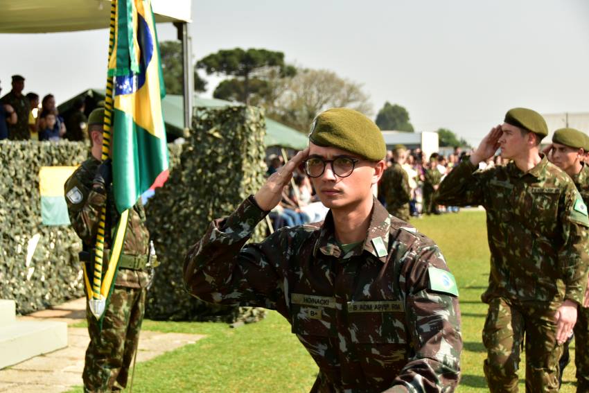 Em Curitiba, a turma de recrutas de 2024 prestou o juramento à Bandeira Nacional durante a celebração do Dia do Soldado. Em suas palavras, o Comandante da 5ª Divisão de Exército parabenizou os soldados. “Que, neste dia, o espírito do Pacificador, suas virtudes cívicas, seu respeito à lei e sua coragem moral inspirem todos os brasileiros para que se unam, a fim de fazer do Brasil o País que merecemos”, discursou o Comandante.