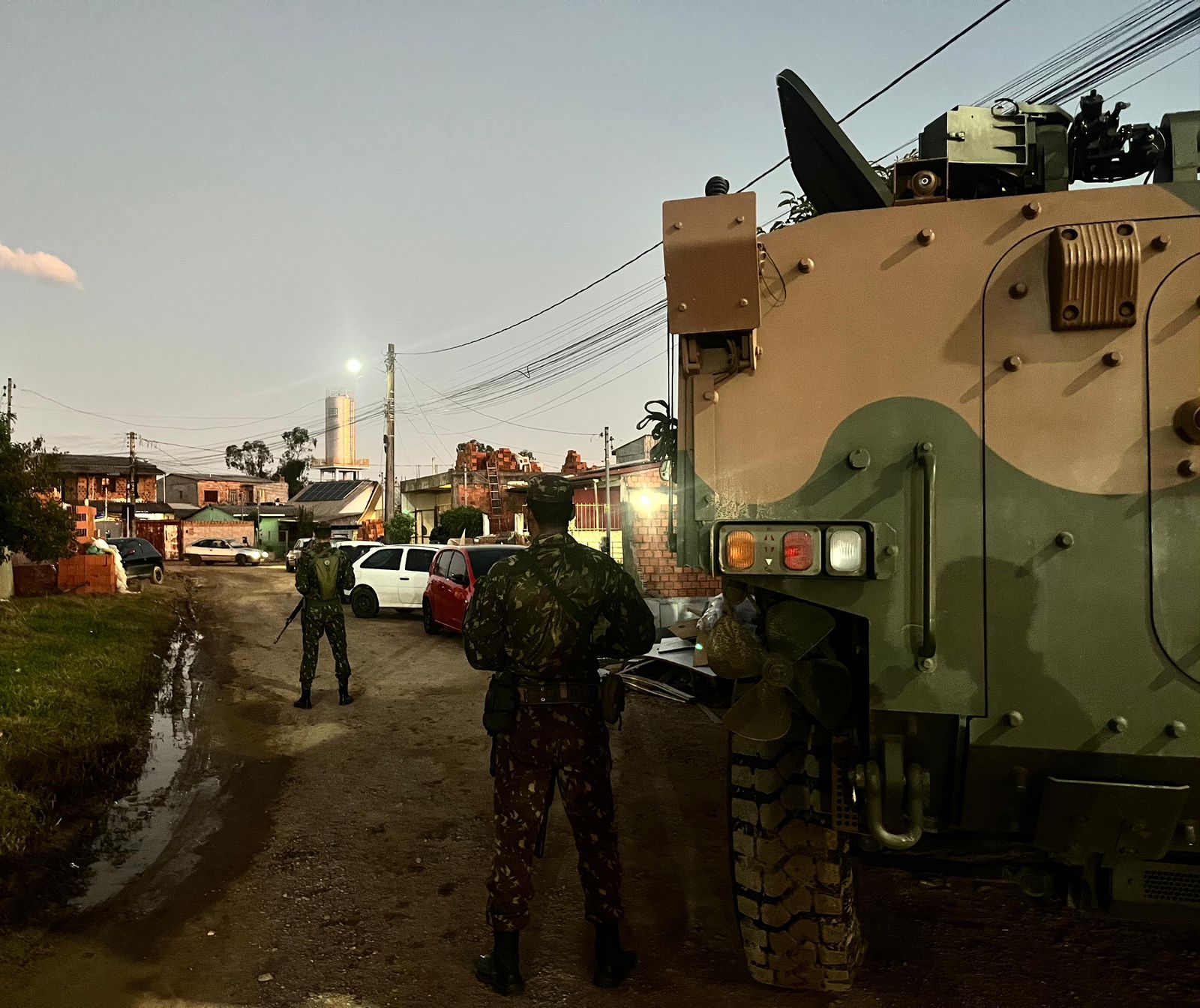 No bairro Progresso, militares do Exército garantiram a segurança durante as ações de entrega de donativos e de apoio médico à população local.
