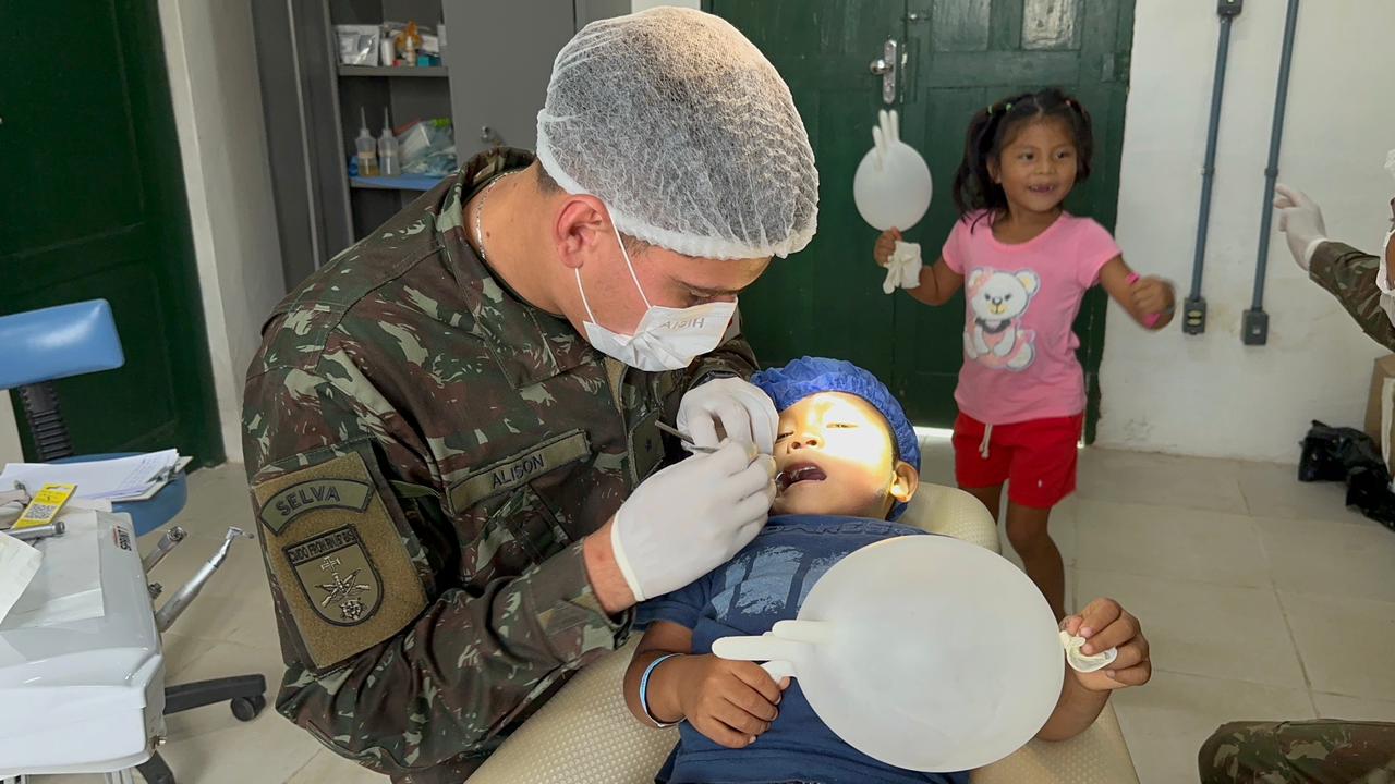 Pari-Cachoeira (AM) – No período de 19 a 25 de outubro de 2025, o Exército Brasileiro, o Distrito Sanitário Especial Indígena do Alto Rio Negro (DSEI/ARN) e o Einstein Hospital Israelita integraram a Missão Humanitária Pari-Cachoeira, oferecendo assistência médica-odontológica às comunidades indígenas da região do 6º Pelotão Especial de Fronteira, realizando 1500 atendimentos em clínica médica, pediatria, ginecologia, ortopedia e vacinação aos povos originários da localidade.