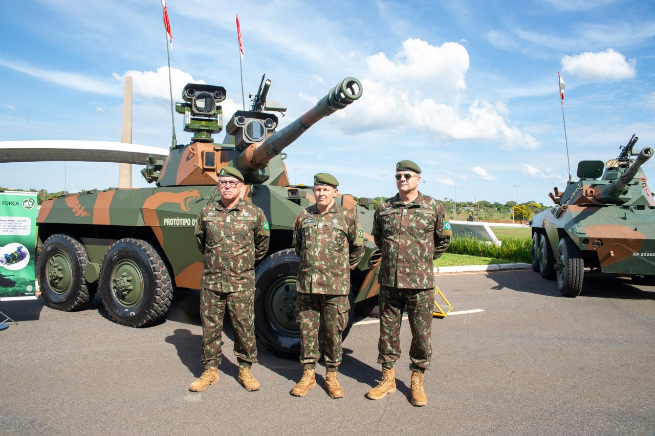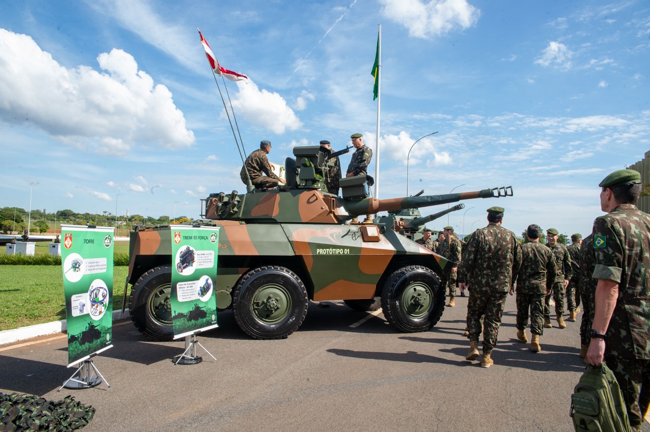 Brasília (DF) – O primeiro protótipo da viatura de reconhecimento Cascavel e a revitalização do Obuseiro Light Gun foram apresentados para o Alto Comando do Exército nesta quarta-feira (29). A solenidade aconteceu no Quartel General do Exército, em Brasília, e contou com a presença do Comandante do Exército, General Tomás Miguel Ribeiro Paiva.