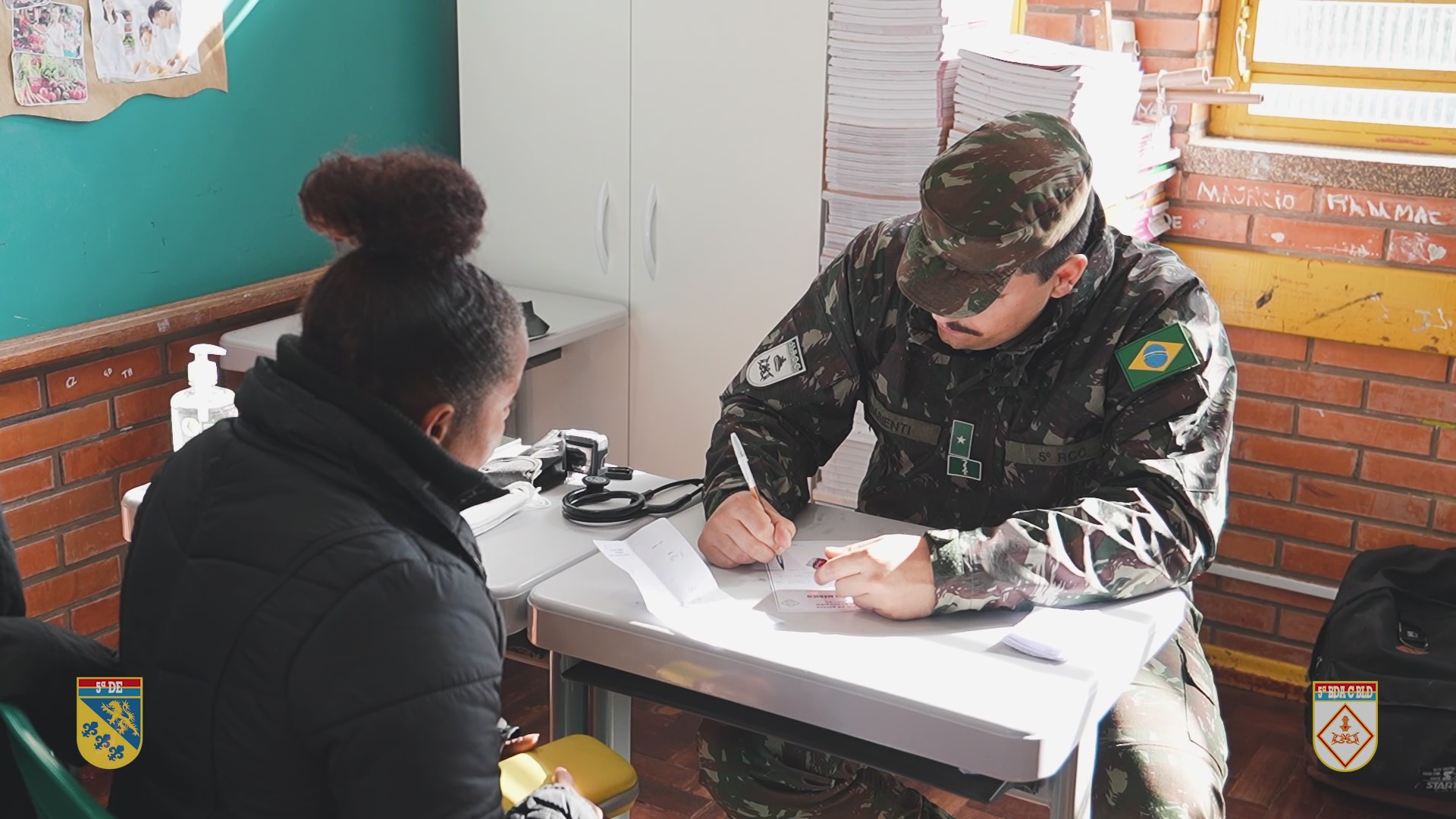 Canoas (RS) – Na última semana, militares da 5ª Brigada de Cavalaria Blindada, de Ponta Grossa (PR), realizaram uma Ação Cívico-Social na Escola Municipal de Ensino Fundamental Paulo VI, em Canoas. Cerca de 1600 moradores do bairro Fátima receberam atendimento odontológico e médico em várias especialidades, além de assistência psicológica. Também puderam realizar o pedido de 2ª via de documentos de identidade. Foram distribuídos 500 kits de limpeza e 800 cestas básicas, além de medicamentos, roupas, brinquedos, kits de higiene bucal e livros.