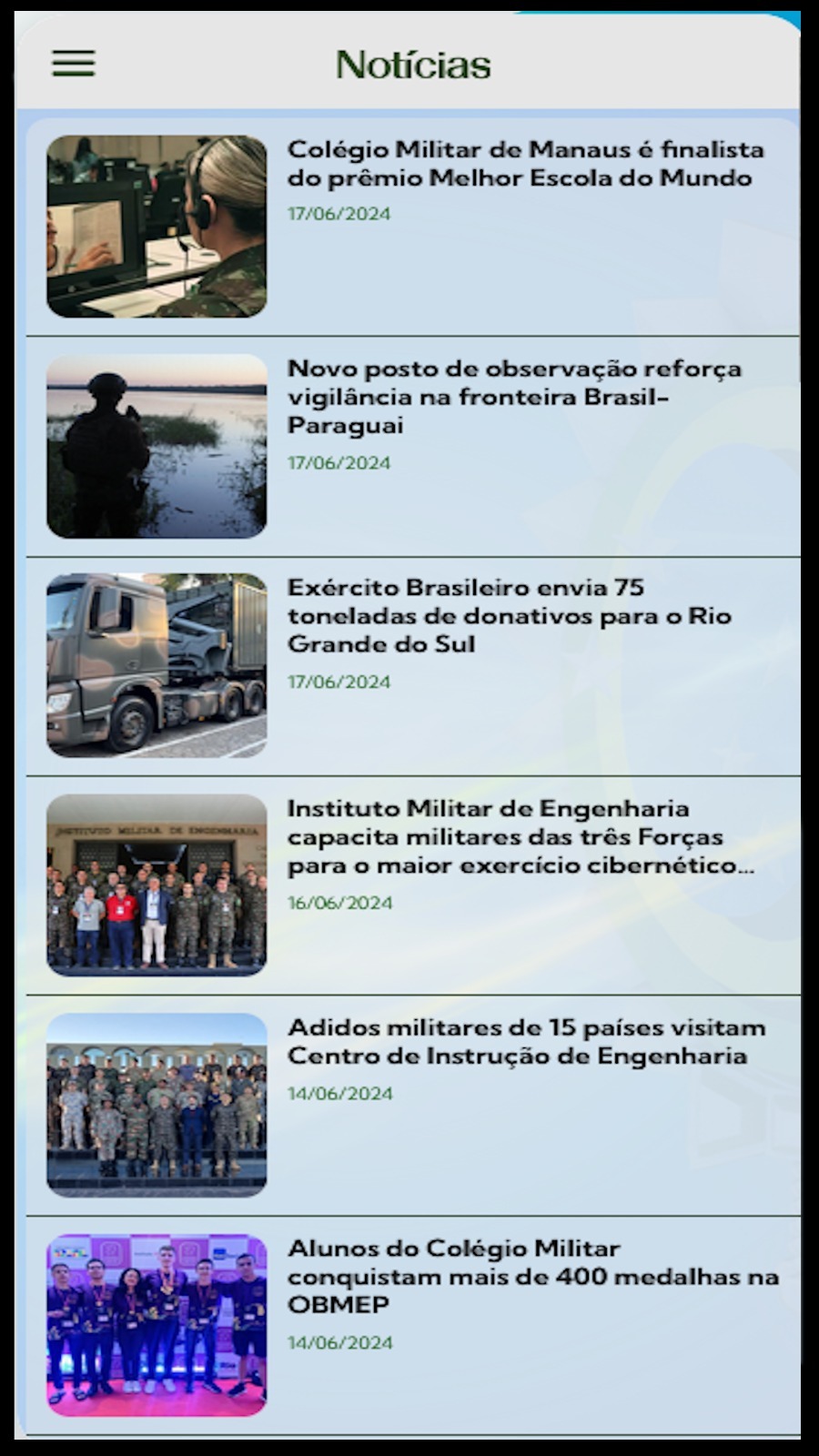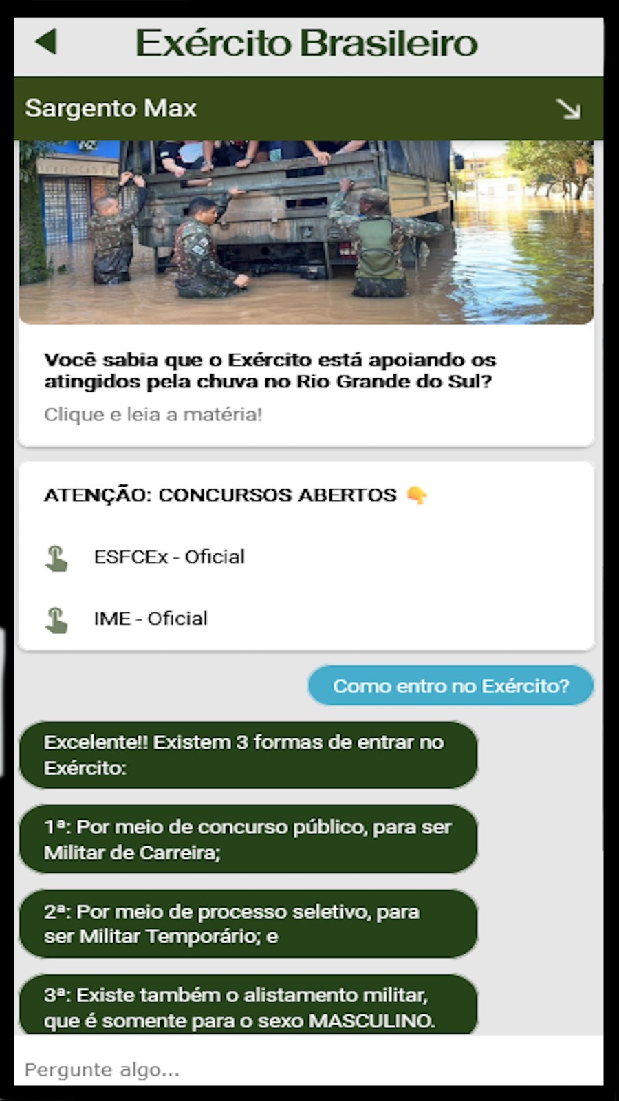 Além disso, o aplicativo aprimorou o acesso rápido à página de alistamento militar online e as informações sobre as diversas formas de ingresso na Instituição, seja por concurso, processo seletivo ou até mesmo em um dos 14 Colégios Militares. Todas essas seções estão organizadas em um novo menu lateral em ordem alfabética, proporcionando uma navegação mais prática e direta.