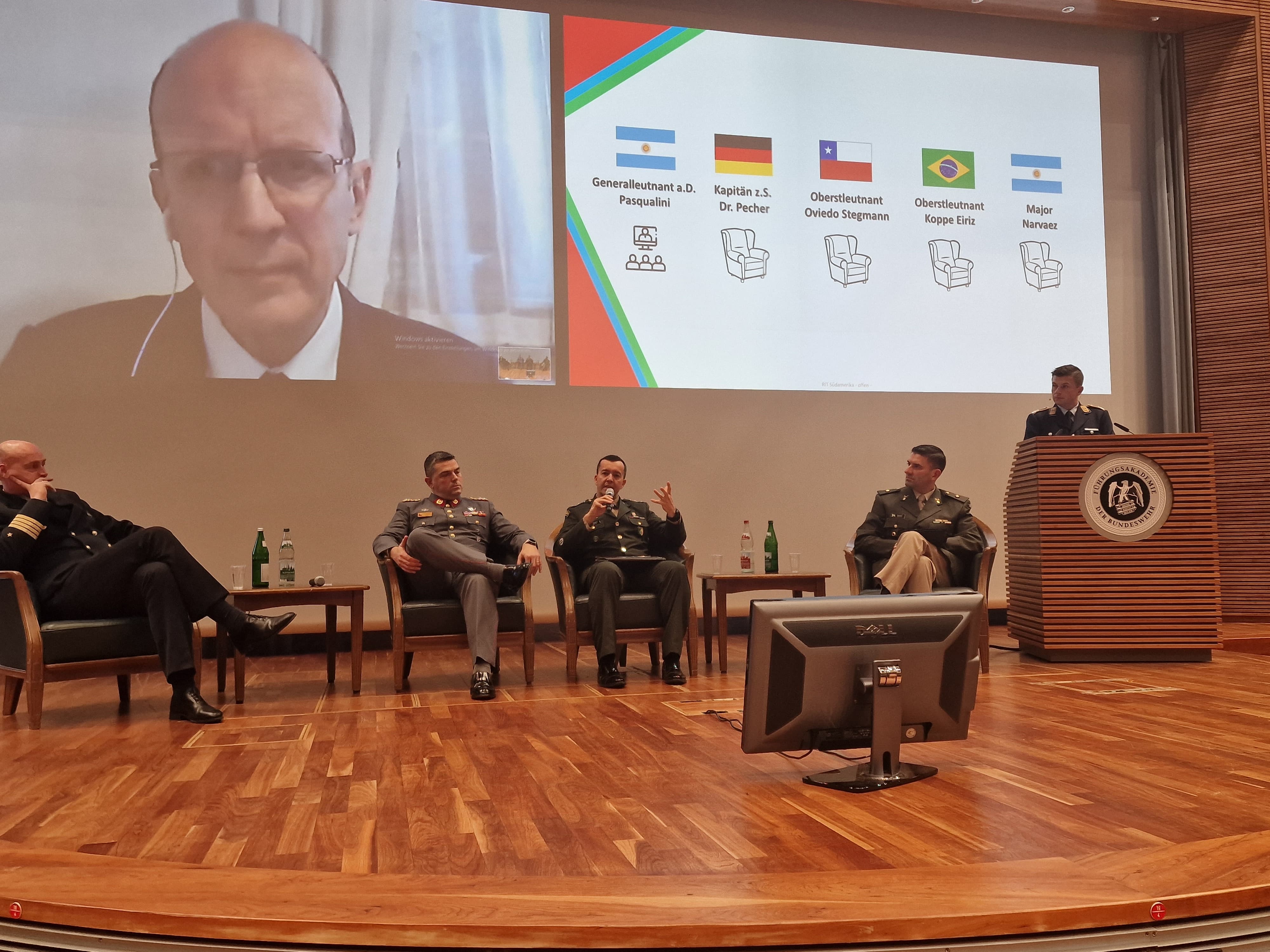 Hamburgo (Alemanha) – Três oficiais brasileiros concluíram o Curso de Estado-Maior Internacional da Führungsakademie der Bundeswehr, a conceituada Escola de Estado-Maior das Forças Armadas da Alemanha. Ao todo, militares discentes de 33 países concluíram o curso neste ano. O Brasil foi representado pelo tenente-coronel de Artilharia George Koppe Eiriz, do Exército Brasileiro, o tenente-coronel Aviador Fernando Lucas Soares Corrêa, da Força Aérea Brasileira, e o capitão de fragata João Langsch, da Marinha do Brasil.