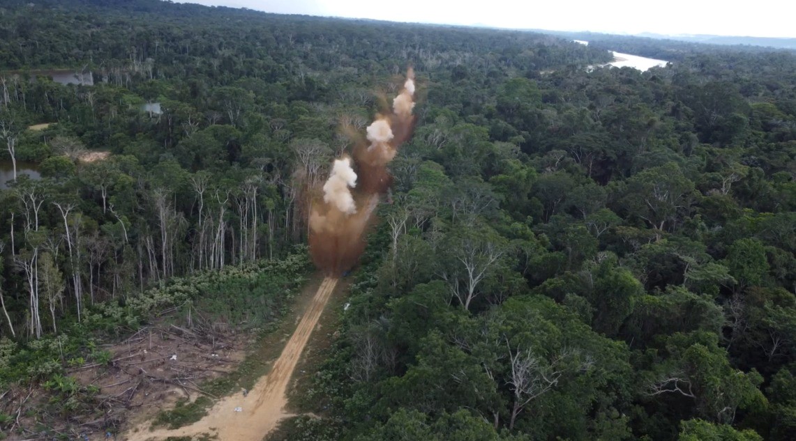 Boa Vista (RR) – No dia 23 de dezembro, o Comando Conjunto CATRIMANI II interditou mais uma pista de pouso clandestina utilizada por garimpeiros, na Terra Indígena Yanomami (TIY). Desta vez, o alvo foi a pista na região de garimpo Mucuim. A ação teve o escopo de asfixiar a capacidade logística da mineração ilegal que atua naquela região. A pista foi inutilizada por intermédio de uma operação controlada, na qual explosivos foram distribuídos ao longo de sua extensão, conforme cálculos de engenharia. Além disso, durante a ação foram encontrados e neutralizados um quadriciclo, aproximadamente 250 litros de combustível e uma tonelada de cassiterita.