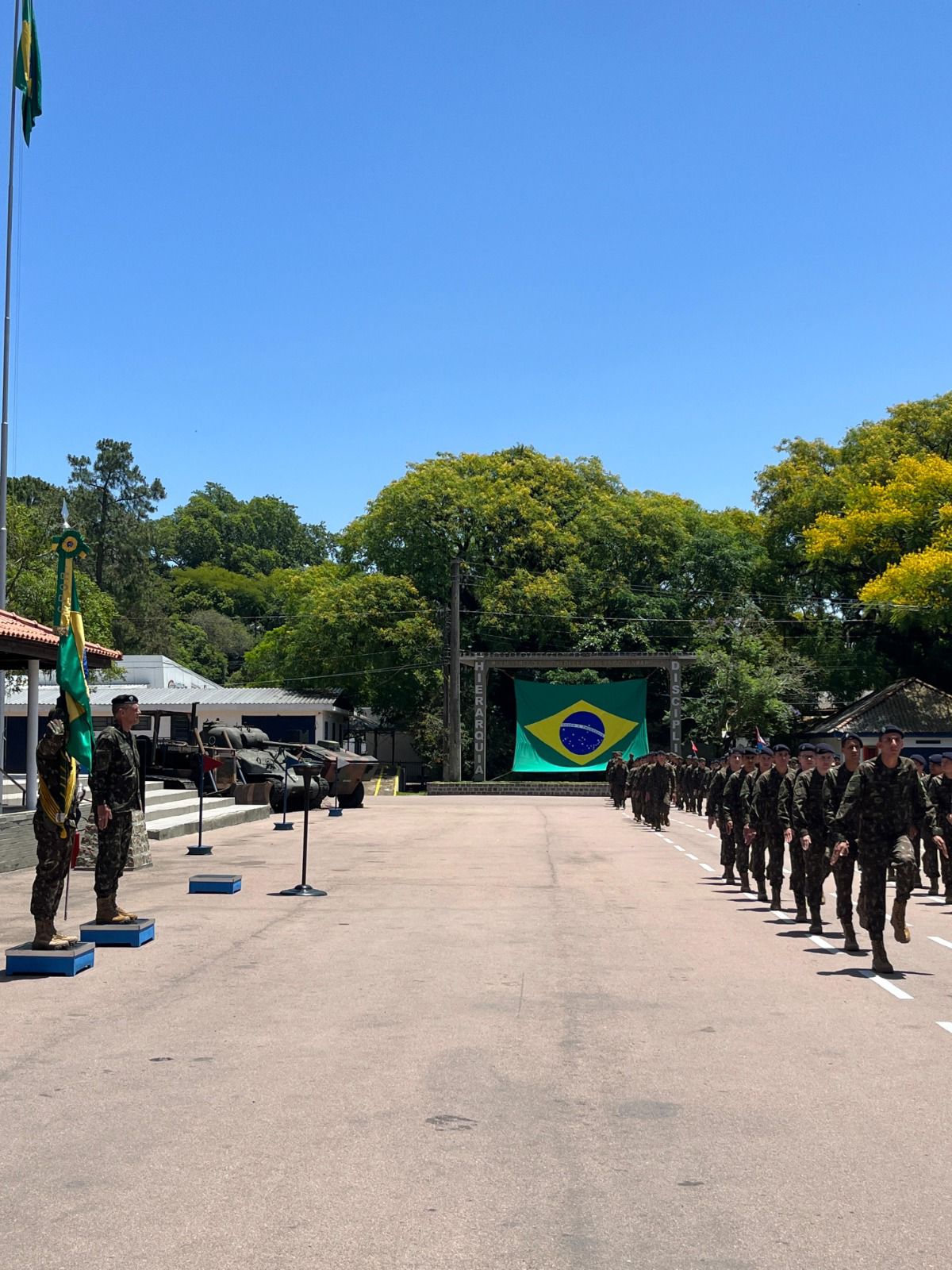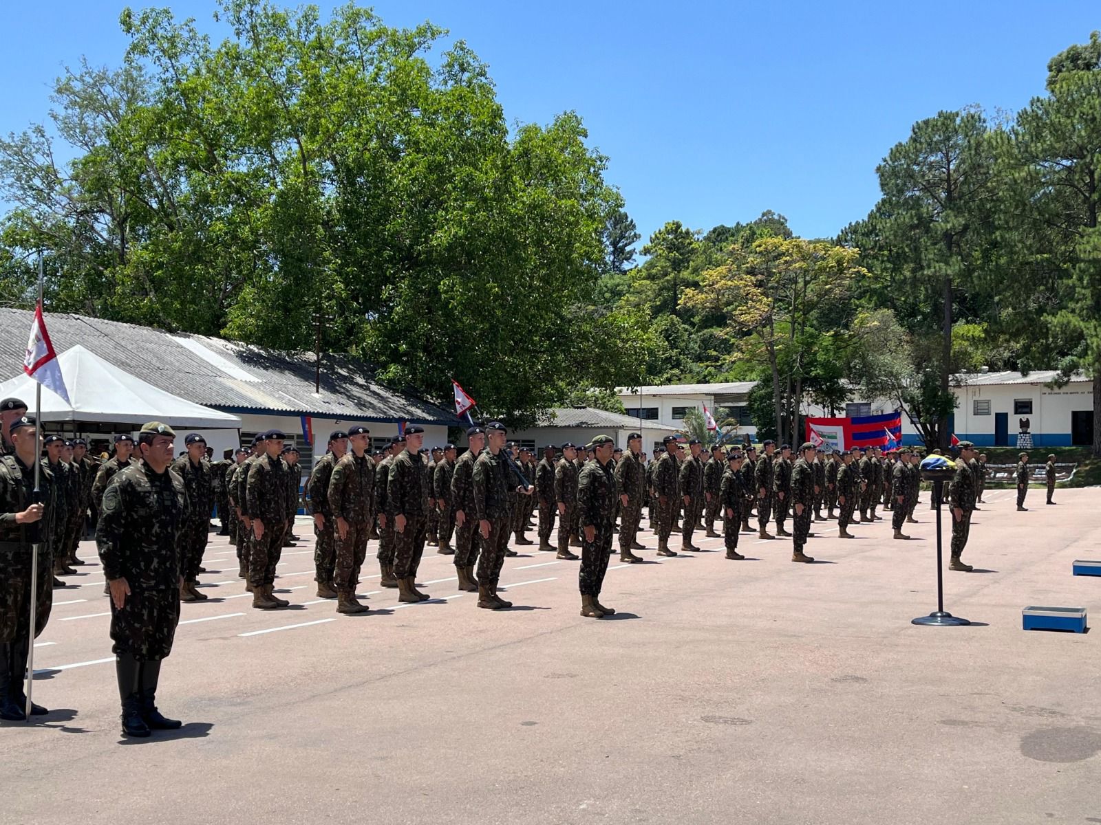 O Comando Militar do Sul (CMS) celebrou o Dia da Bandeira com uma formatura no Centro de Preparação de Oficiais da Reserva de Porto Alegre. A atividade foi presidida pelo Chefe do Estado-Maior do CMS, General de Divisão Marcelo Lorenzini Zucco, que destacou o valor da Bandeira Nacional como símbolo de unidade do povo brasileiro. A cerimônia foi encerrada com desfile da tropa em continência à bandeira.