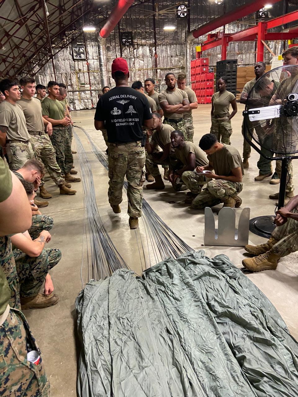Já o Parachute Rigger Course desenvolve técnicas de preparação de cargas médias e pesadas, dobragem de paraquedas de cargas e emprego de equipamentos utilizados no lançamento aéreo de suprimento. Ao longo de cinco semanas, o curso aborda questões técnicas e operacionais do lançamento aéreo de cargas com precisão. Cerca de 50 alunos concluíram o curso, entre eles o Capitão Vinícius Pacheco e o Sargento Herbert, do Exército Brasileiro.