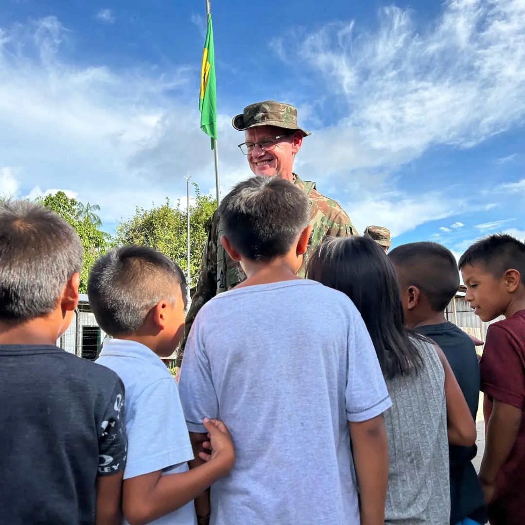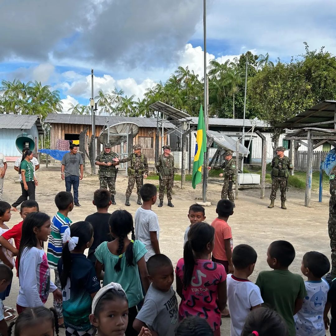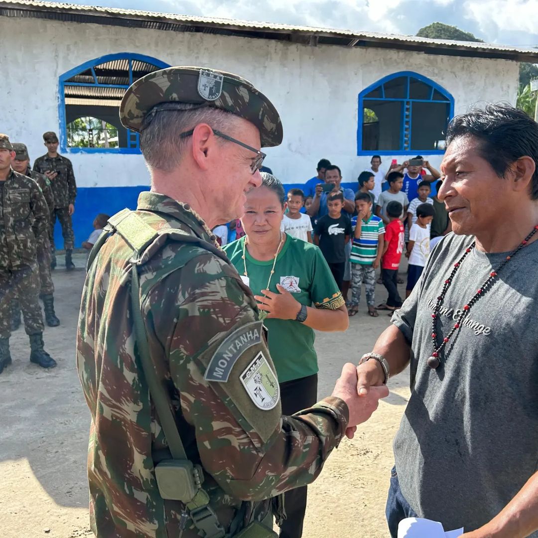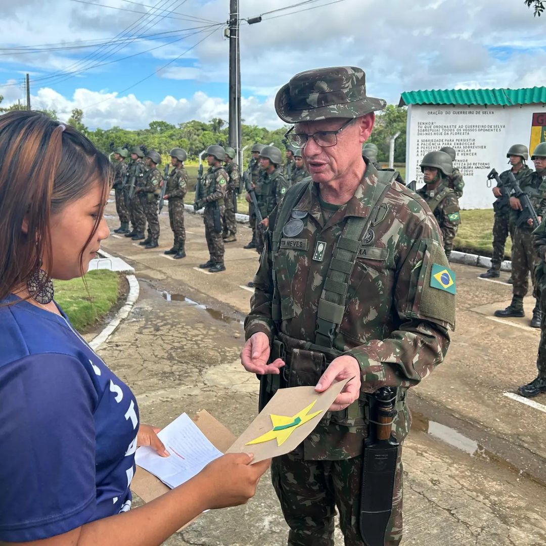 A solenidade contou com a presença do Comandante Militar da Amazônia, General de Exército Costa Neves, e do Sr. Sebastião, líder indígena local. Juntos, hastearam a Bandeira Nacional, representando a união e o respeito mútuo entre o Exército Brasileiro e as comunidades indígenas.