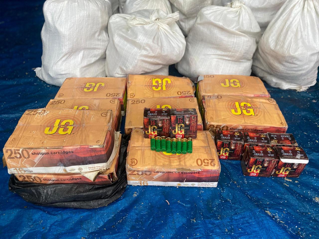 Manaus (AM) – Durante uma missão de reconhecimento da Operação Escudo, o 2º Pelotão Especial de Fronteira realizou uma grande apreensão de munições e carne de pesca ilegal no Rio Içá, próximo à fronteira com a Colômbia.
