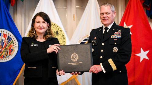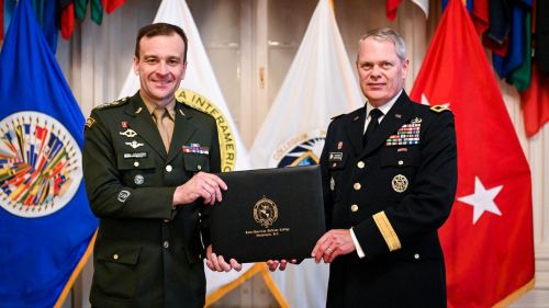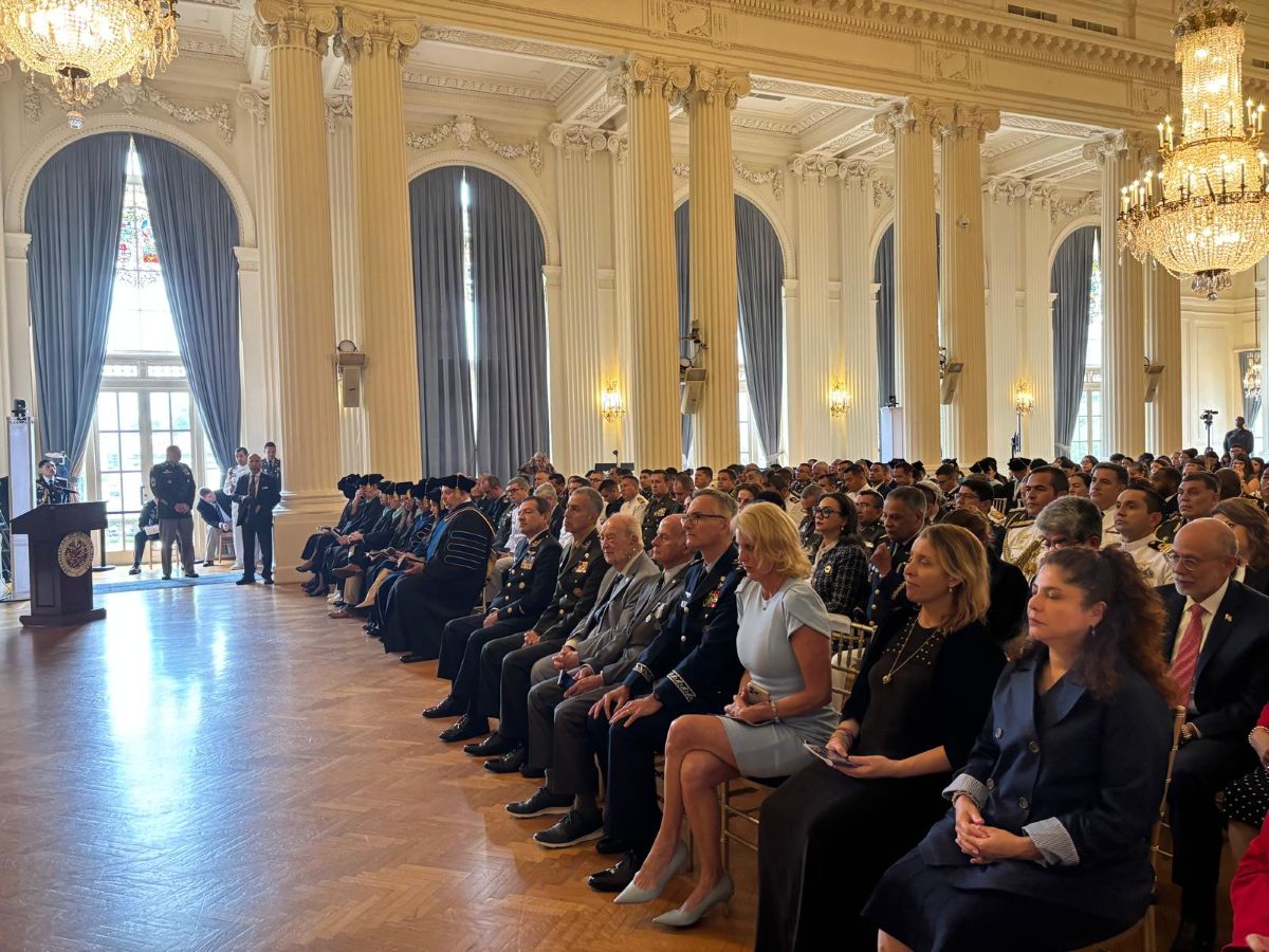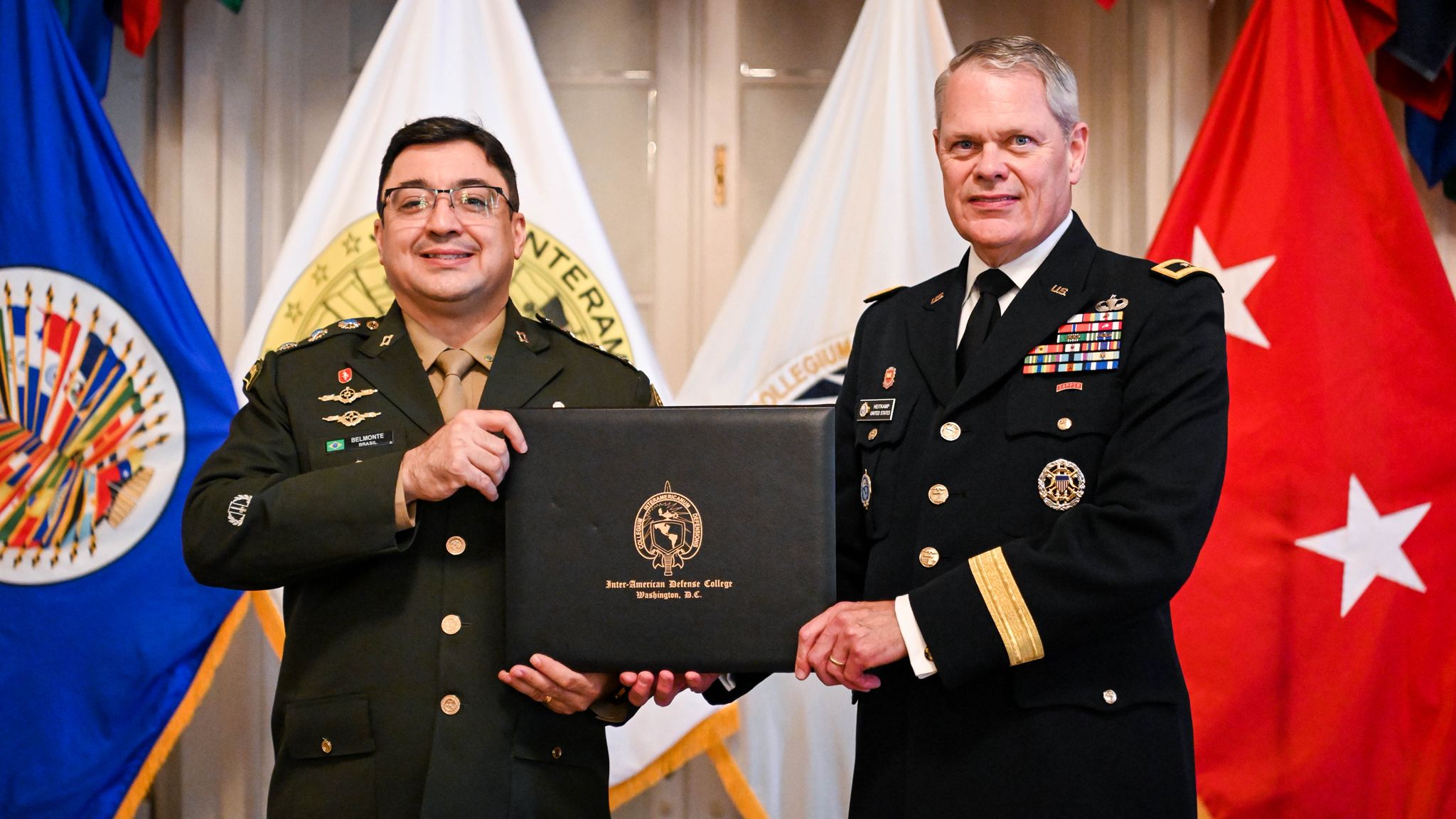 Washington (EUA) – No dia 17 junho, em cerimônia realizada na sede da Organização dos Estados Americanos (OEA), concluíram o Mestrado em Ciências de Defesa e Segurança Interamericana, promovido pelo Colégio Interamericano de Defesa (CID) os Coronéis do Exército Giancarlo Niedermeier Belmonte e Rodrigo Pace Arantes Hambrecht, e a Doutora Débora Duran, vinculada ao Departamento de Educação e Cultura do Exército (DECEx) e representante da Chefia de Educação e Cultura do Ministério da Defesa. Os dois últimos obtiveram desempenho excepcional, alcançando uma média superior a 96% nas 18 disciplinas e a nota máxima na Defesa Oral.