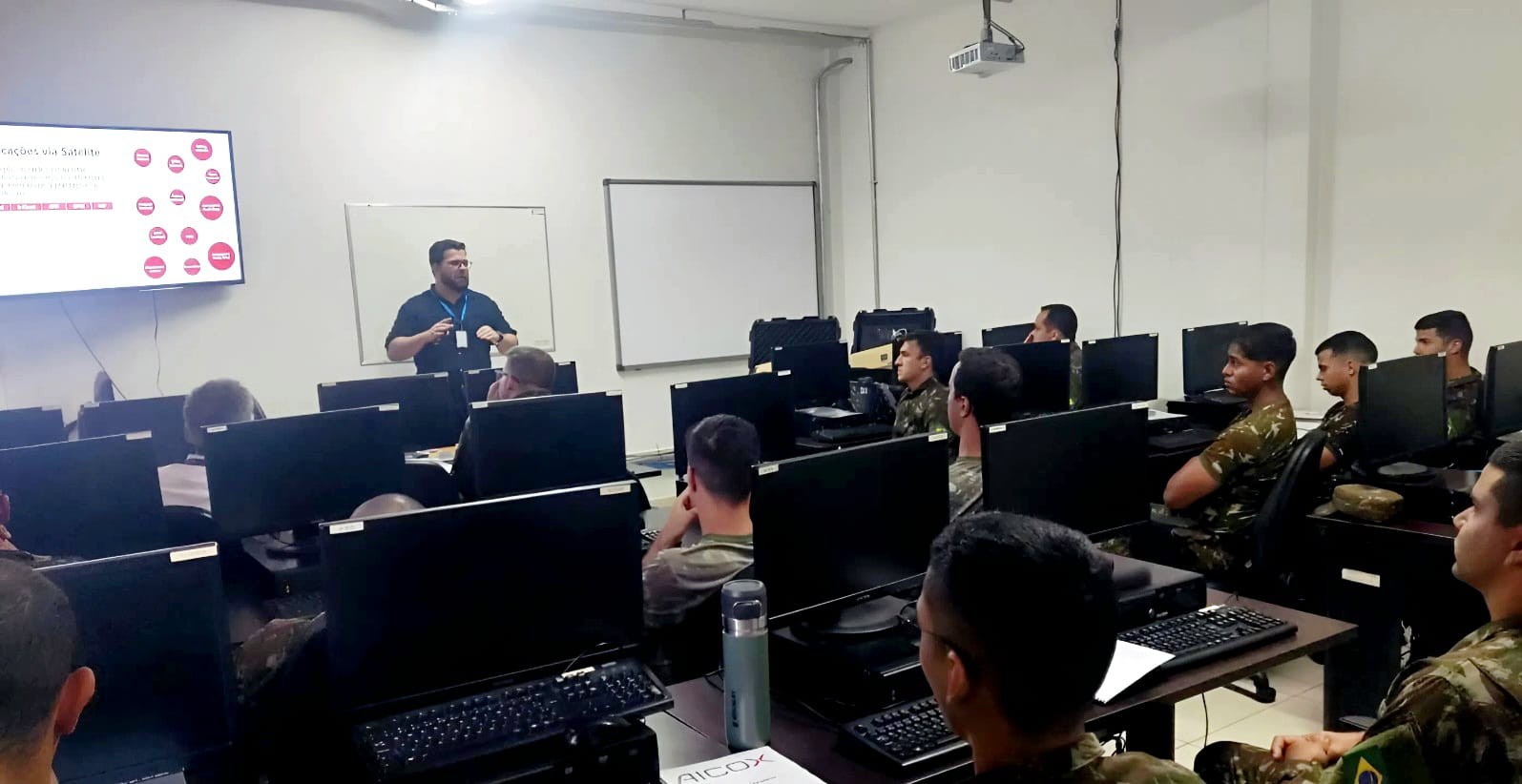 A capacitação contou com a presença do General de Brigada Jacy Barbosa Junior, Comandante de Comunicações e Guerra Eletrônica do Exército e Gerente dos Projetos SAD/SISFRON, cuja participação reforçou a relevância da atividade e evidenciou o compromisso da Força com a modernização dos meios e o constante preparo da tropa.