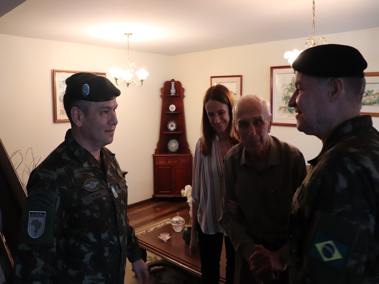 Curitiba (PR) – Ao completar 100 anos de vida, o senhor João Trela, veterano da Força Expedicionária Brasileira (FEB), recebeu em sua casa uma homenagem do Exército Brasileiro, marcando o reconhecimento da Força Terrestre pelos seus feitos nos campos de batalha da Segunda Guerra Mundial.