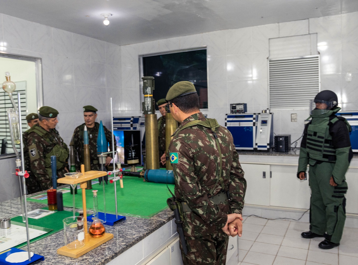 A comitiva do Comandante do Exército teve a oportunidade de visitar o Laboratório Químico Regional, onde acompanhou os procedimentos de análise dos componentes químicos da munição, aspecto crucial para assegurar a eficácia e segurança das operações militares. Foi apresentada uma demonstração prática no Pelotão de Desmanche e Destruição, evidenciando a meticulosidade e a precisão envolvidas no desmanche da munição.