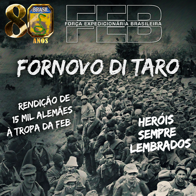O informativo desta semana traz uma especial homenagem aos Pracinhas que proporcionaram um dos maiores feitos históricos da 2ª Grande Guerra, a rendição de tropa divisionária alemã à Força Expedicionária Brasileira nas cercanias de Fornovo di Taro. Vejam também o hotsite da FEB na página do Exército recordando suas conquistas, Nossos Heróis Sempre Serão Lembrados.
