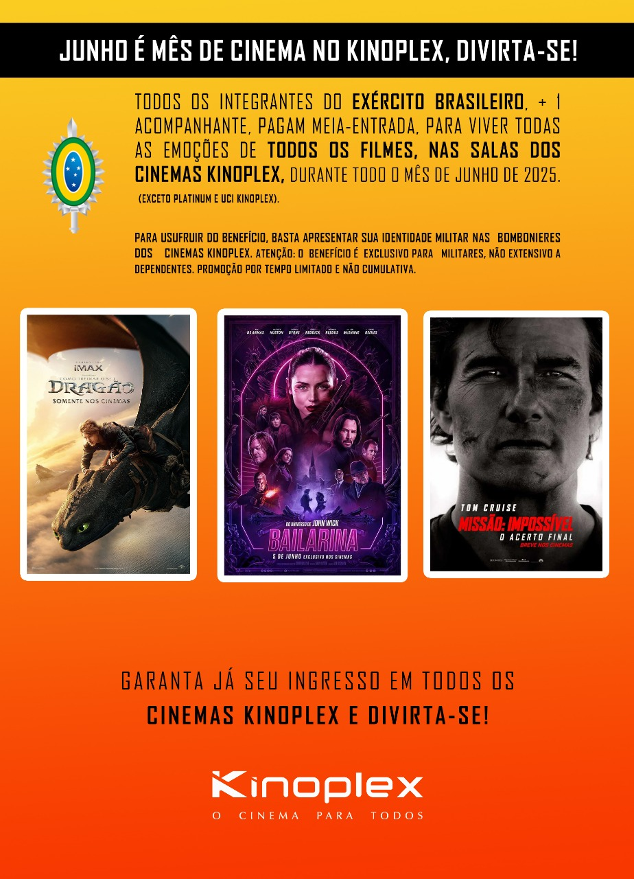Antes de finalizar, ratificamos que a promoção da empresa de cinema Kinoplex ainda está valendo. Aproveitem esta oportunidade no mês de junho e divirtam-se.
